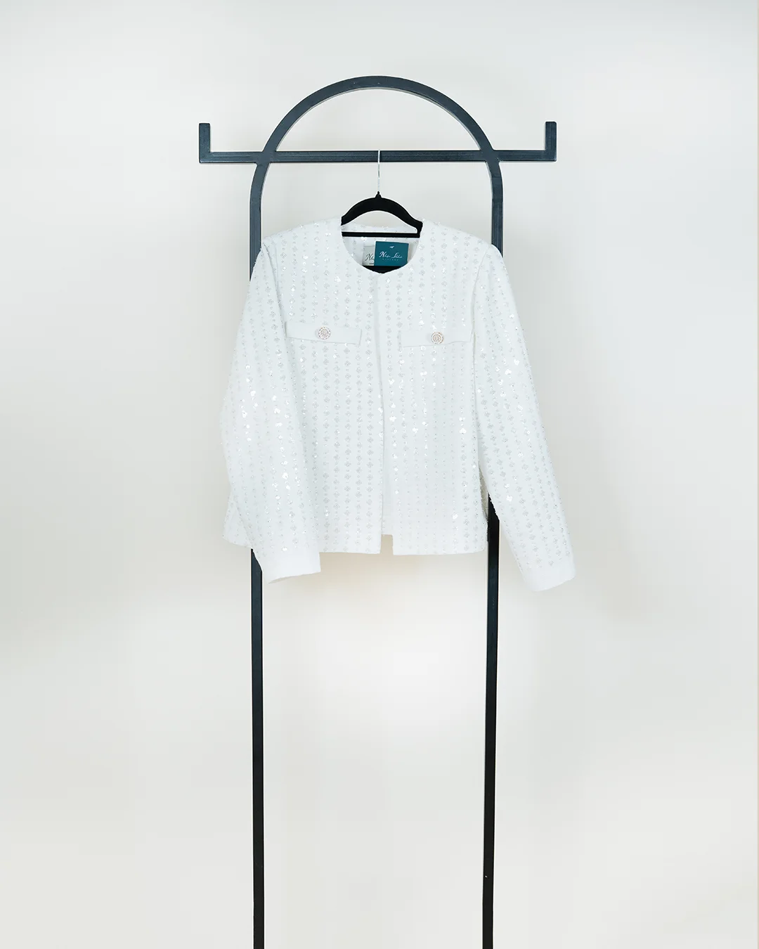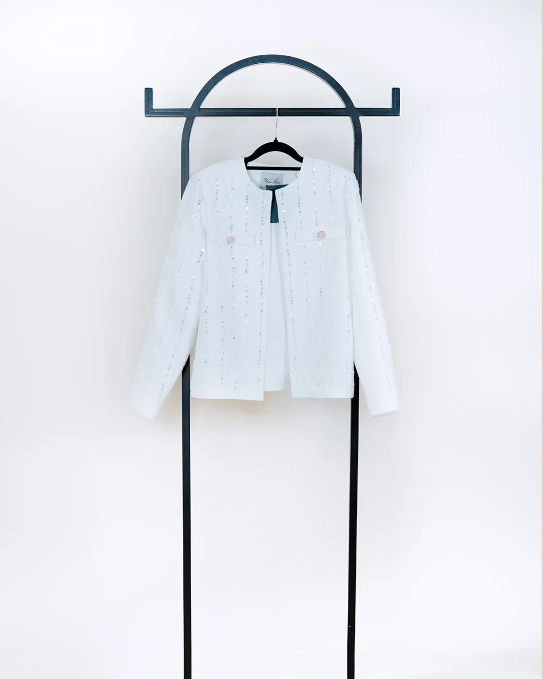 کت شانتون طرحدار ، سفید راه راه گلدار