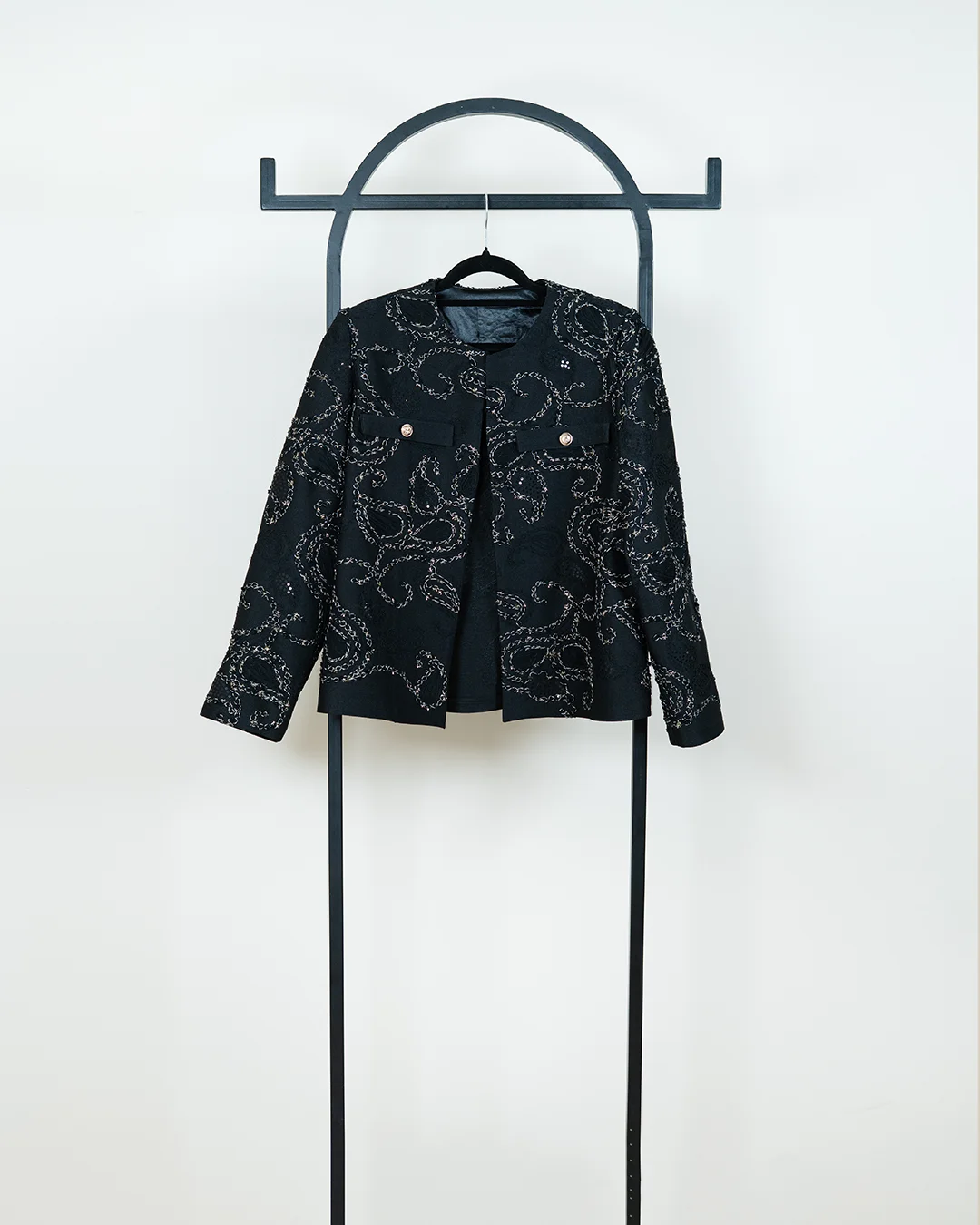 کت شانتون طرحدار ، مشکی طلایی بته جقه