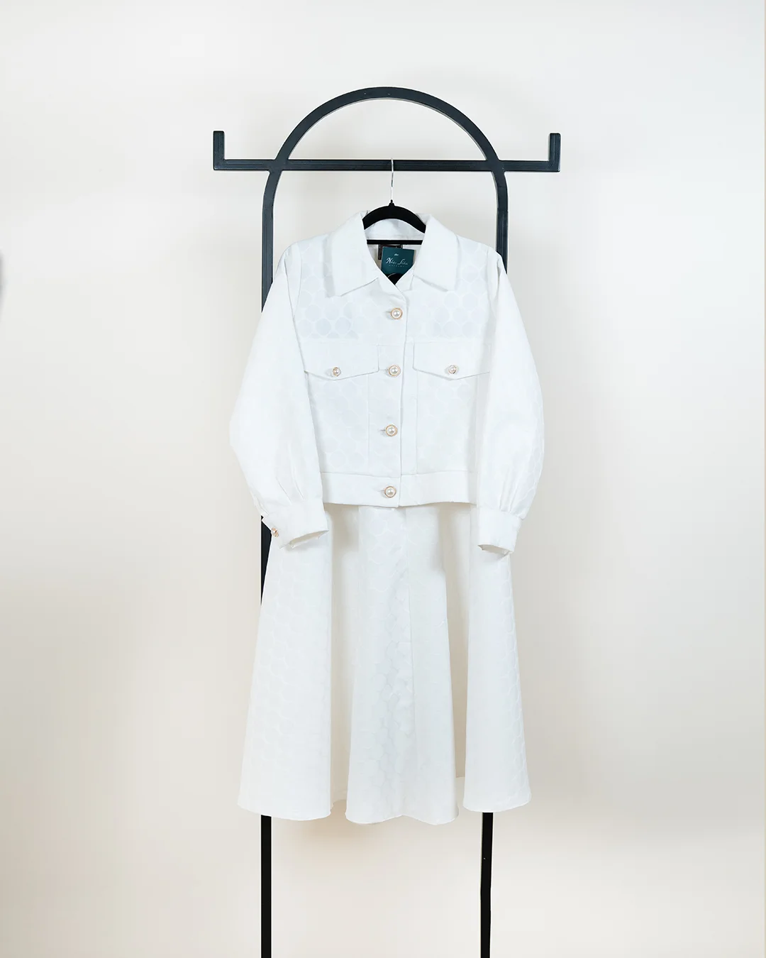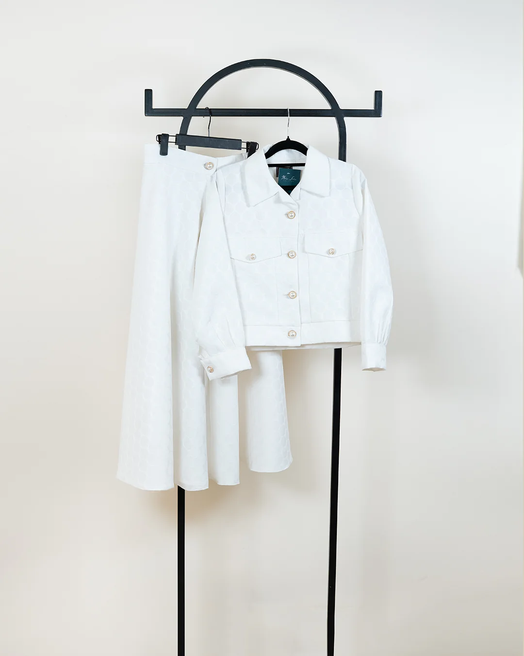 ست کت دامن ژاکارد ساده دکمه مروارید ، سفید