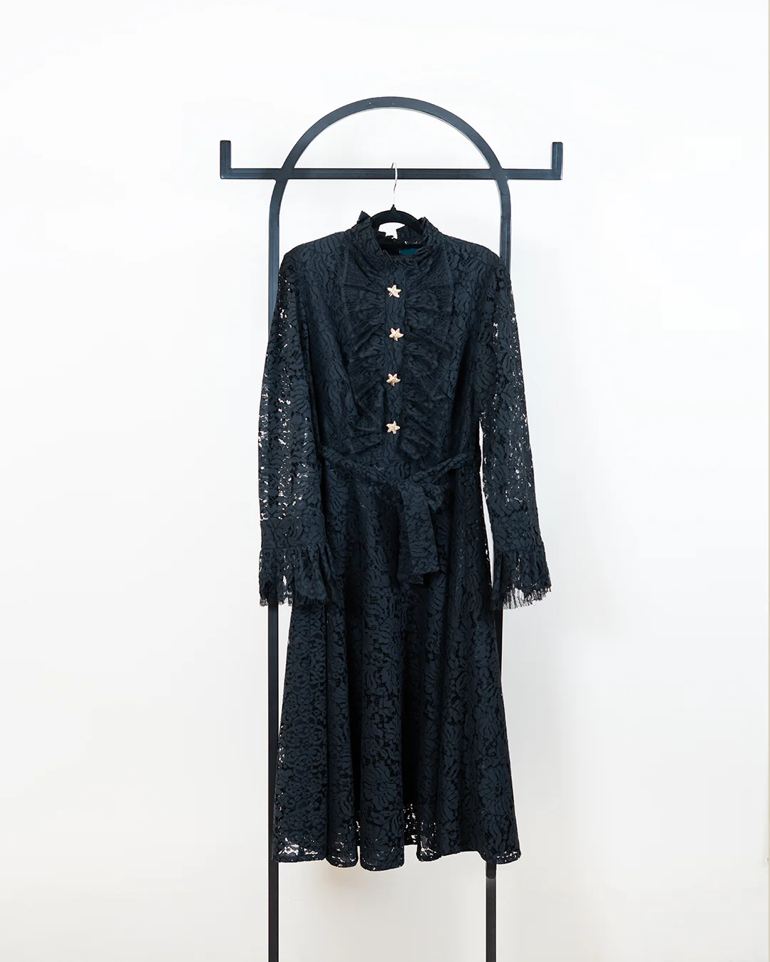پیراهن دانتل جلو چیندار بلند ، مشکی