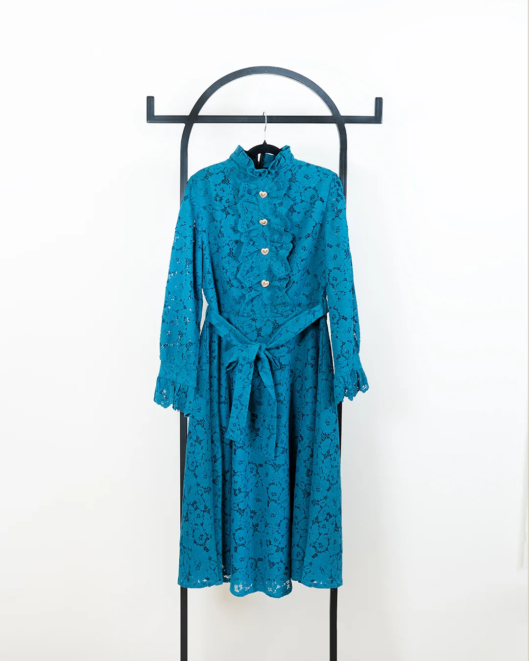 پیراهن دانتل جلو چیندار بلند ، فیروزهای