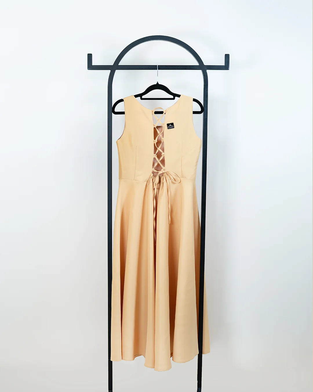 پیراهن ساتن بلند پشت بندی ، کرم