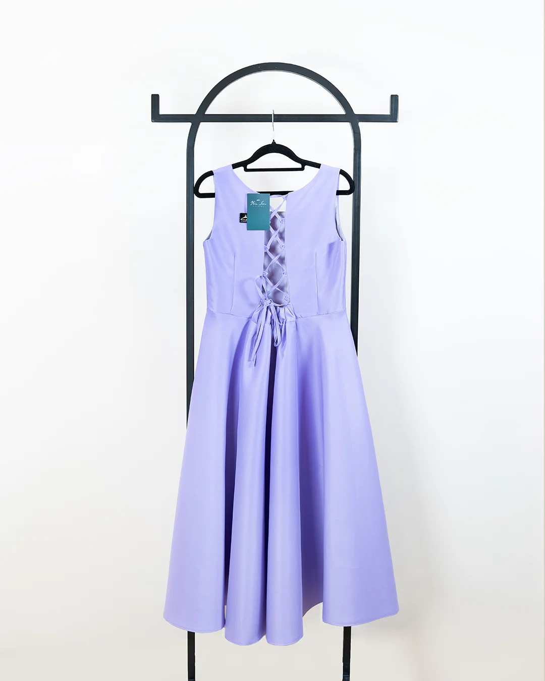پیراهن ساتن بلند پشت بندی ، یاسی
