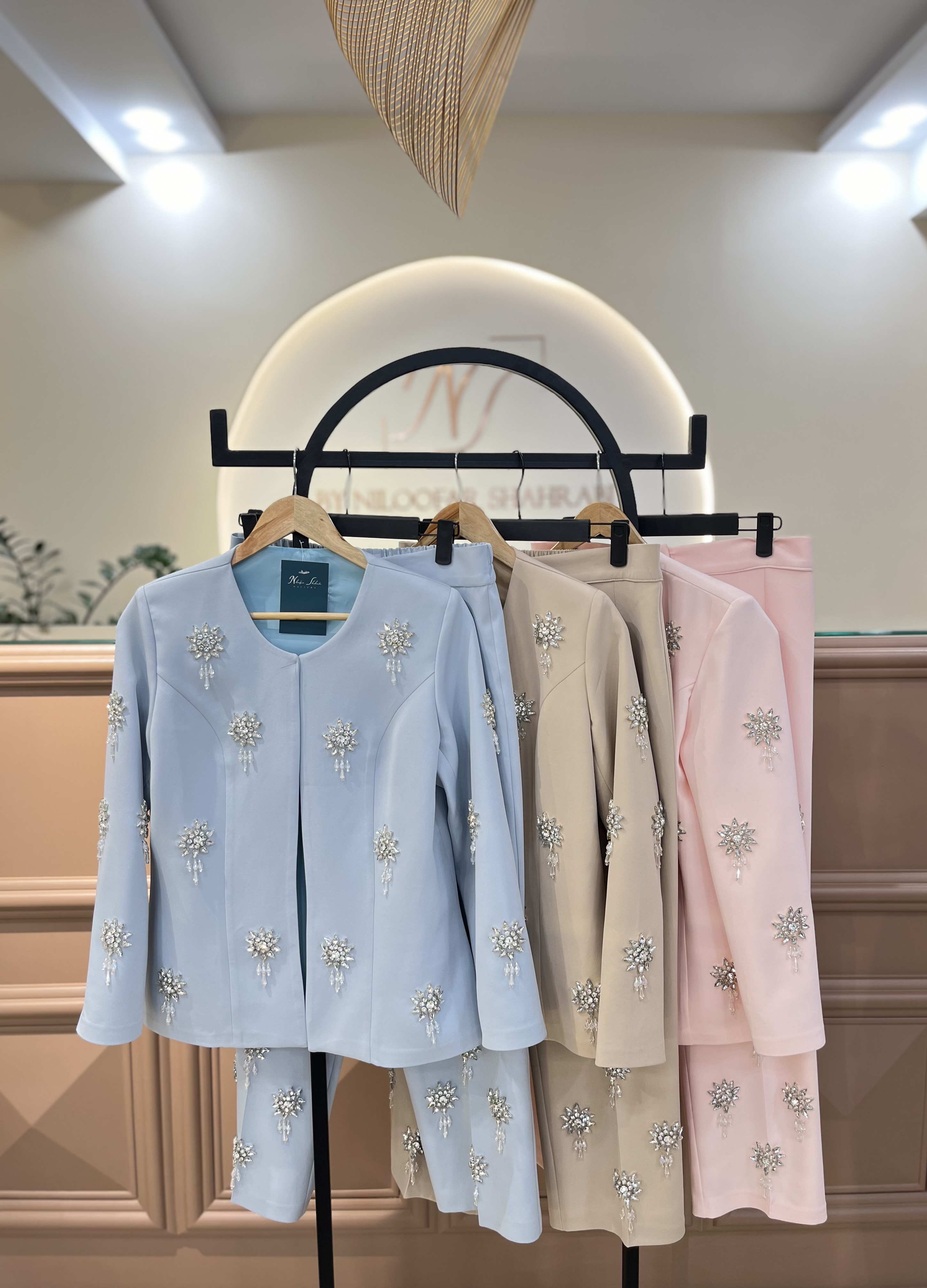 کت شلوار کرپ کار شده ستاره ای ، صورتی
