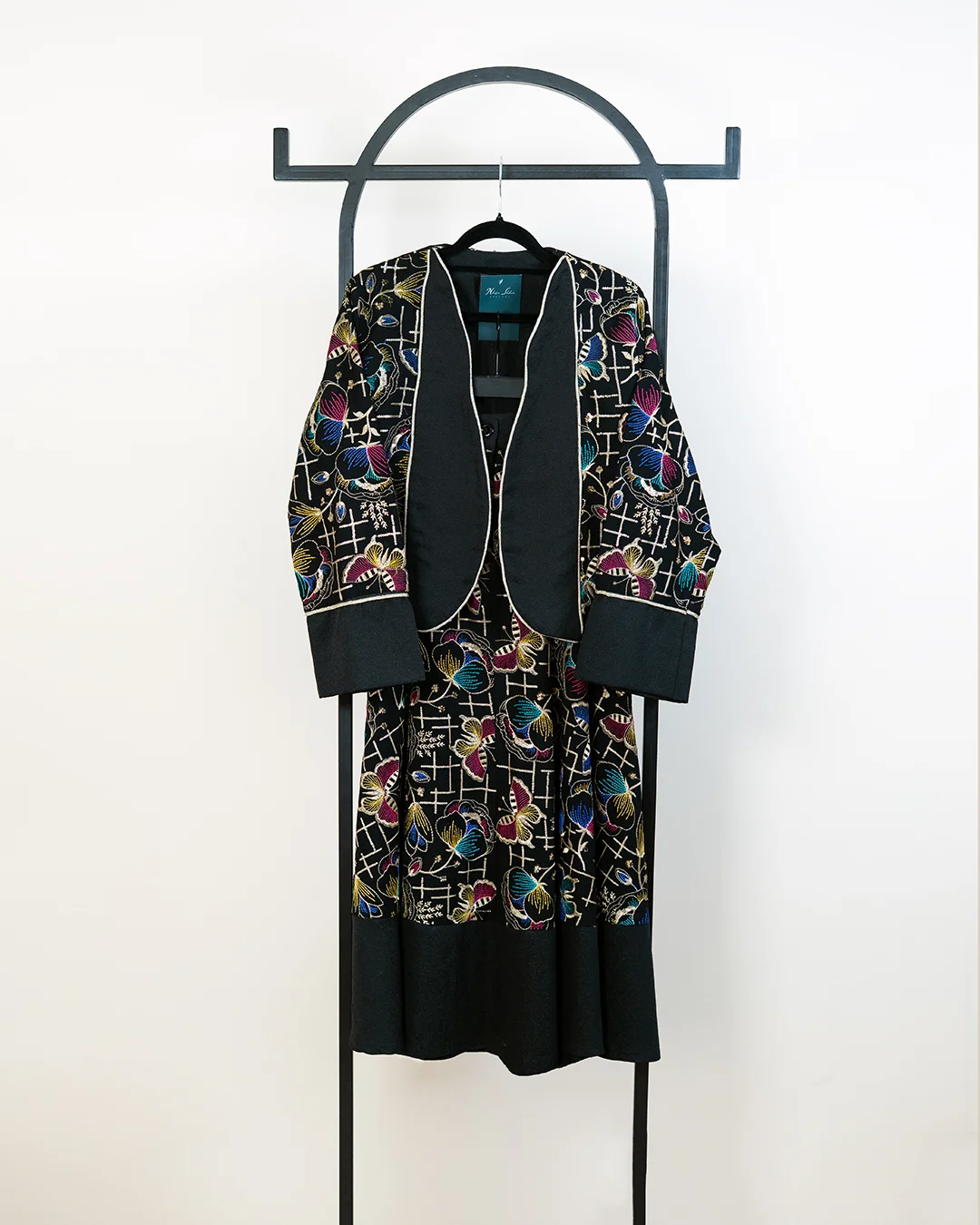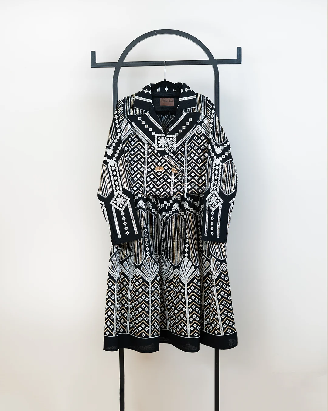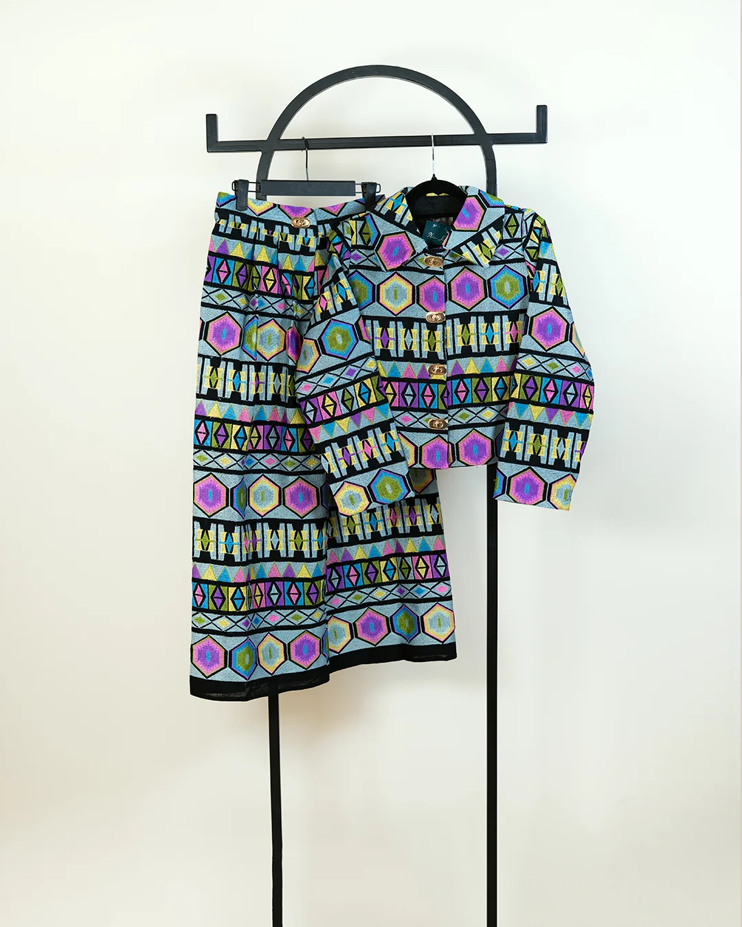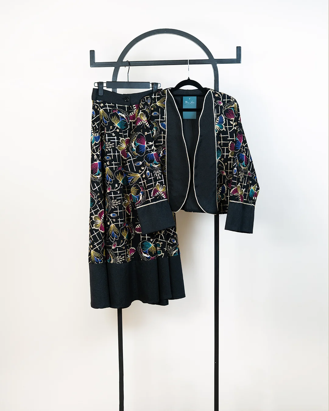 ست کت دامن لینن سوزن دوزی ، مشکی طلایی تک قفلی